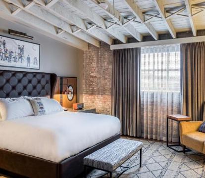 This hotel in Alexandria, VA is a great destination for a relaxing stay. It’s 6 minutes drive from Old Town, it boasts on-site dining, spa services and a 42-inch flat-screen TV in all rooms. The staff is service oriented and the rooms have been recently remodeled. Enjoy the convenience of a mini-bar, great amenities and a peaceful atmosphere. Explore the area with a 10-minute walk to the train station or metro station. Relax in the courtyard, take advantage of the spa services, and enjoy the unique menu at the hotel's restaurant. With valet parking and no resort fees, it's a great choice for a peaceful and affordable stay.